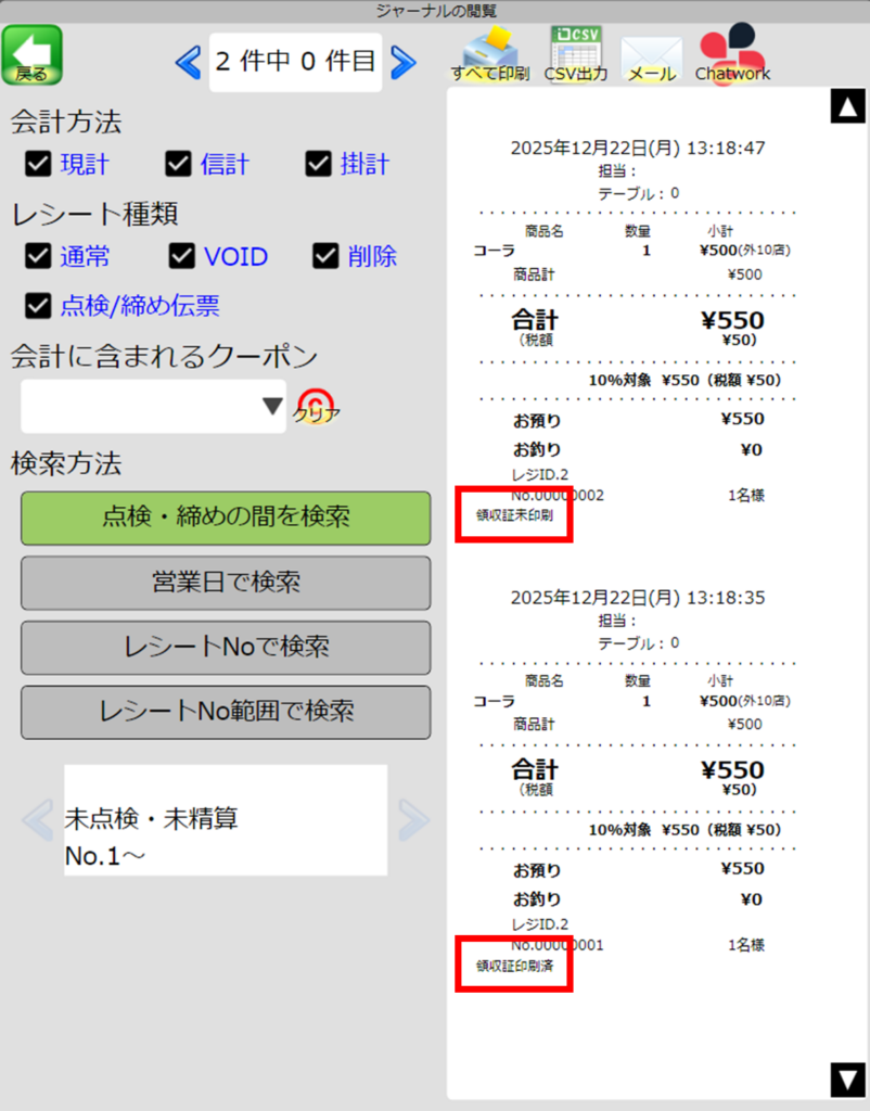 領収証を印刷したかどうかジャーナル画面で確認できるようになりました。