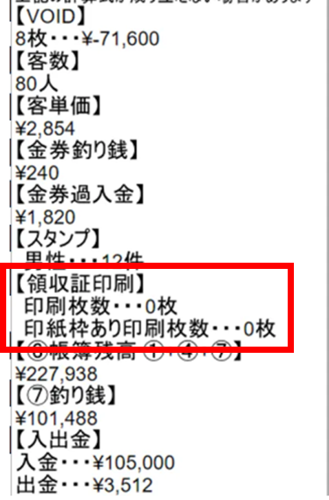 締め伝票に領収証印刷枚数、印紙枠付き領収証印刷枚数がそれぞれ印刷されるようになりました。