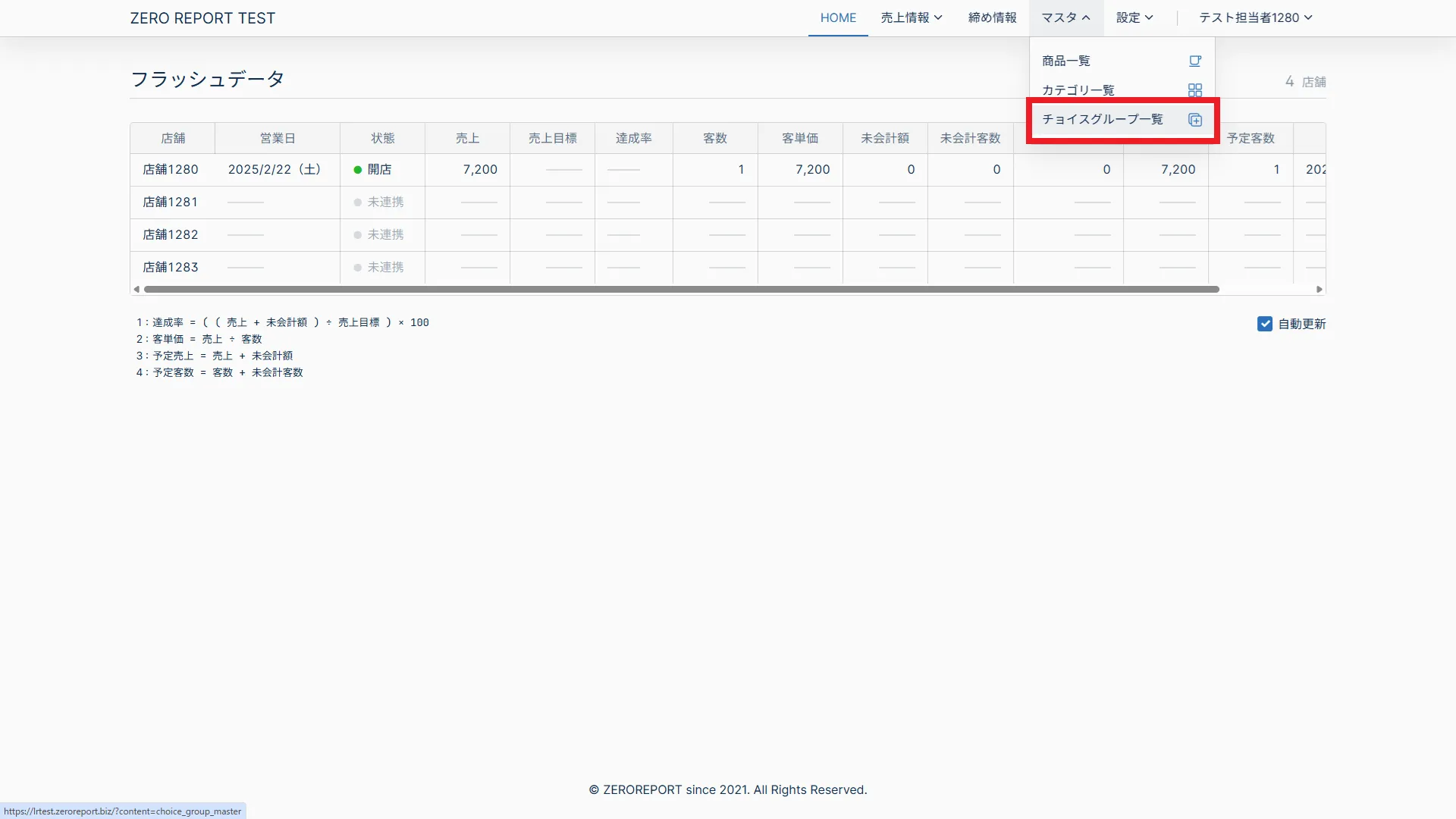 画面上部の店舗選択セレクトボックスから対象店舗を選択します。