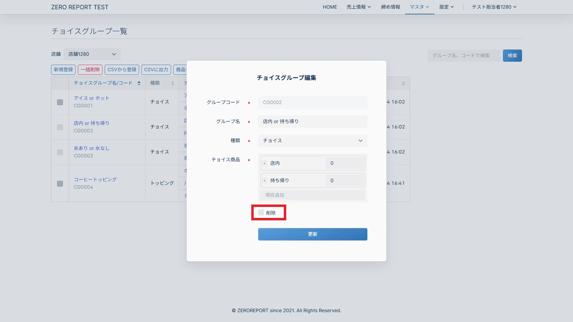 チョイスグループの削除を行います。 チョイスグループの削除には以下の2種類の方法があります。