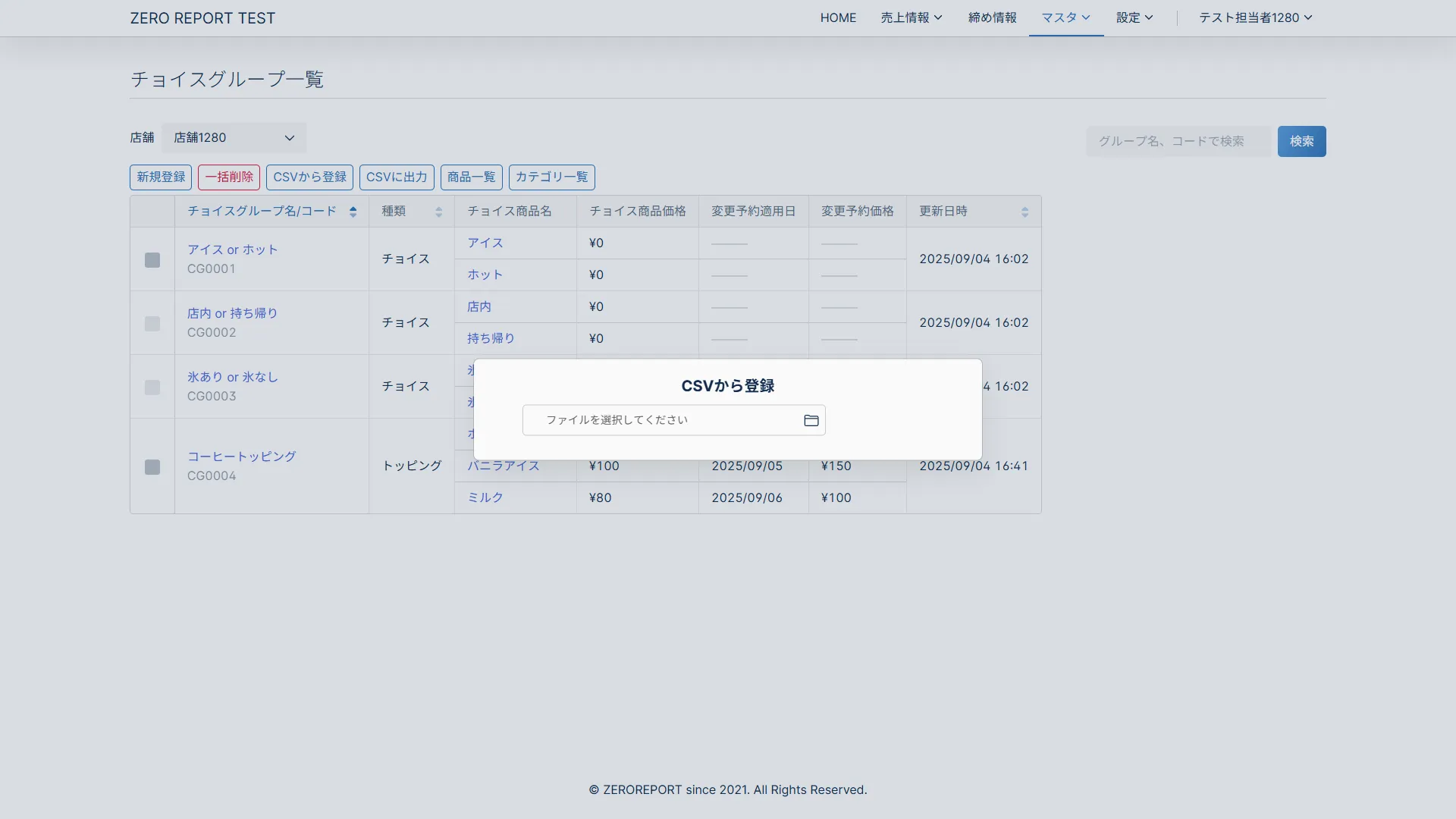 CSVファイルを使用してチョイスグループ情報を一括登録または更新できます。