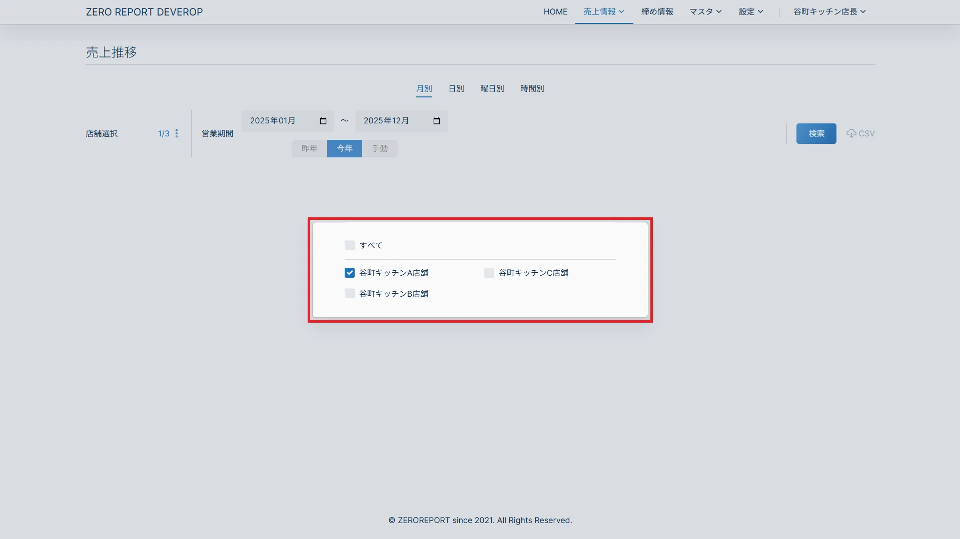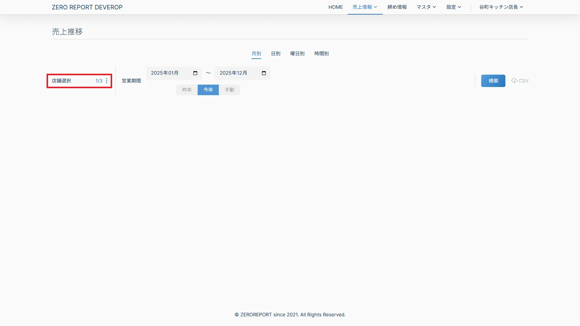 店舗選択画面を開き、データを閲覧したい店舗を選択する。